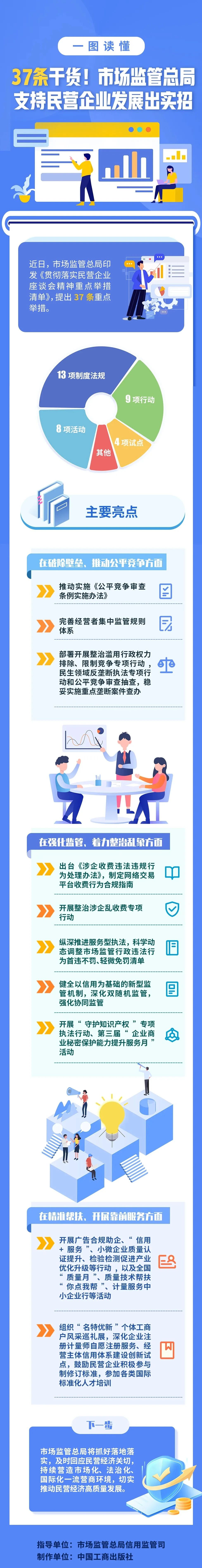 近日,市场监管总局印发《贯彻落实民营企业座谈会精神重点举措清单》,提出37条重点举措。