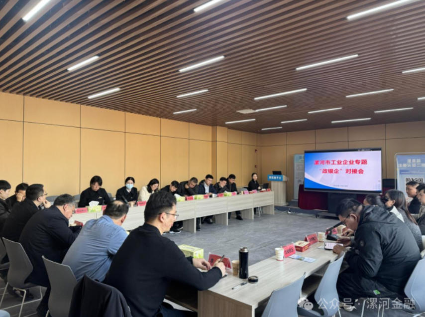 为进一步提高金融服务工业经济发展能力,拓宽银企沟通交流渠道,1月13日,市政府办(金融)联合市工信局、市人行召开工业企业专题“政银企”对接会。市政府办(金融)、市工信局、市人行、市金融服务中心、漯易融(信易贷)平台相关负责同志,以及我市9家银行机构、2家融资租赁公司和8家工业企业代表参加本次会议。